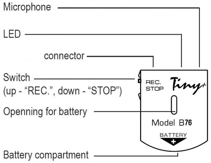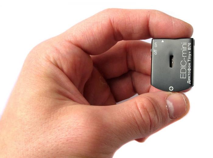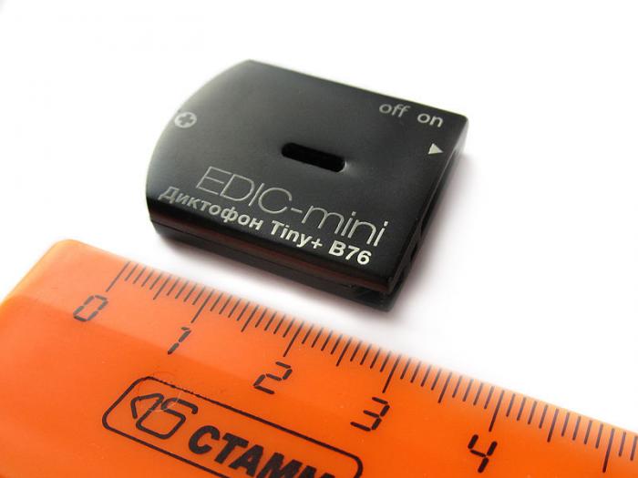 Miniatiūrinis (31x25x6 mm) skaitmeninis diktofonas EDIC-mini Tiny+ B76 skirtas aukštos kokybės kalbos įrašymui. Turi galimybę įsijungti nuo garso ir pagal užprogramuotą tvarkaraštį. Reguliuojamas jautrumas. Įrašytą informaciją galima perklausyti įkėlus ją į kompiuterį.