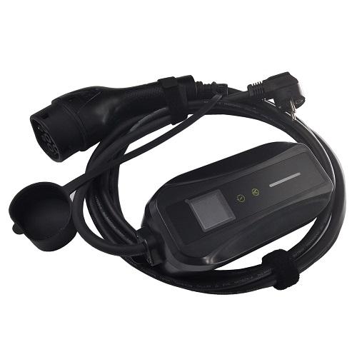 Nešiojamas įkroviklis elektromobiliams, su Type 2 kištuku, reguliuojama srove 6A-16A, 3.5kW, vienfazis, su LED ekranėliu ir jutikliniais mygtukais, IP66, su 5m kabeliu.