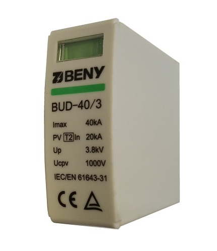 Atsarginis SPD modulis, skirtas fotoelementų ir saulės inverterių apsaugai nuo viršįtampių, 40kA galingumo, tinkamas tvirtinimui ant Din bėgelio.